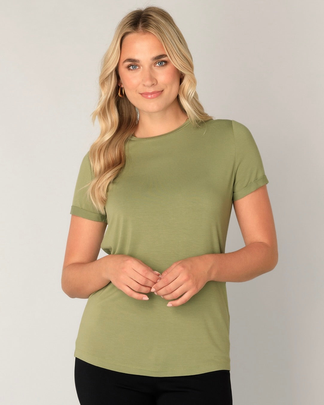 The Yalba T Shirt is a high quality stretch viscose blend with a regular fit and folded back cap sleeve.